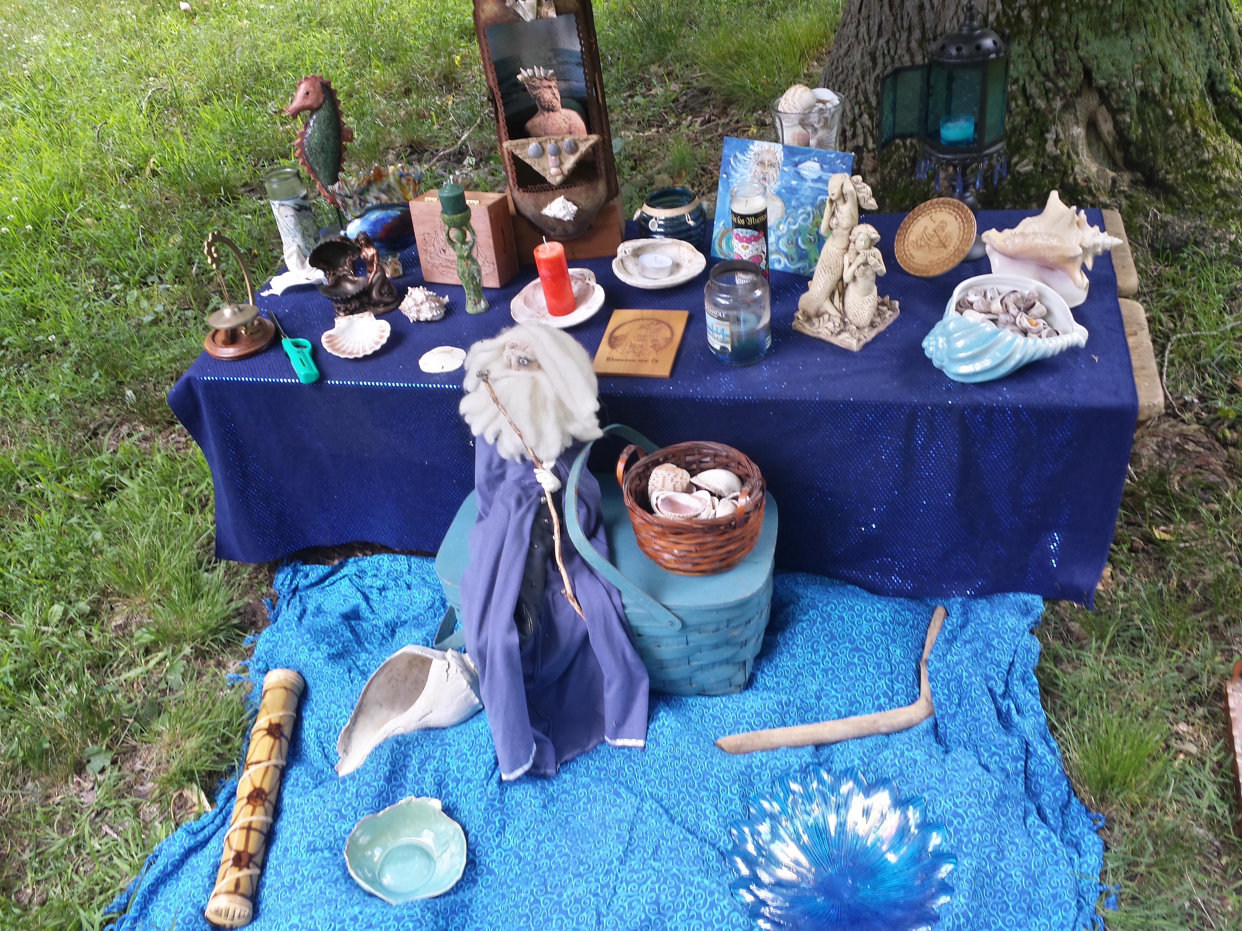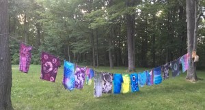 Saturday was our busy day! Diane W gave us a tie-dye tutorial and we spent the morning with dye buckets creating our own wearable art. In the afternoon, Diane W and Diane D led a rite dedicated to Manannan Mac Lir. The omen was good. Manannan sends his mists of protection around us a thank you for again honoring him. He would like more… not more offerings at this rite, but more acknowledgement from us in the future.